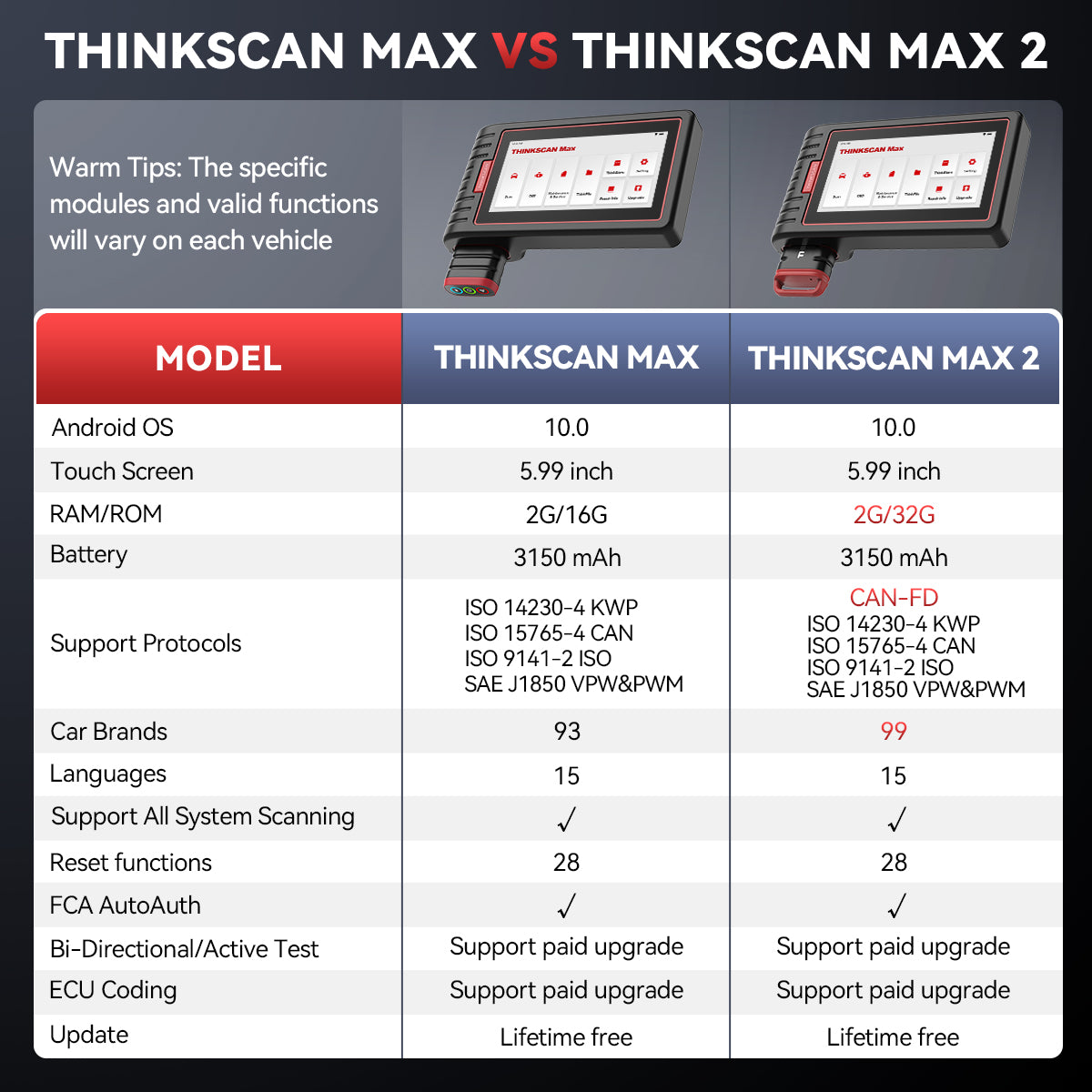 • ThinkScan MAX 2 supports CAN-FD, supports more cars than ThinkScan MAX