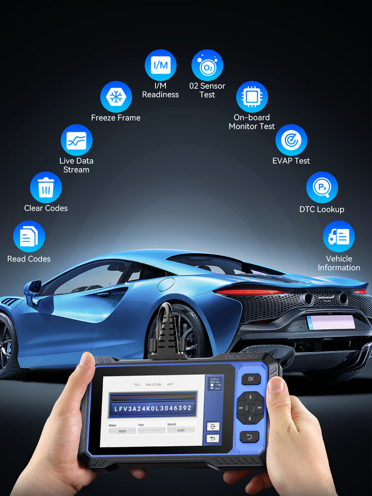 Instead of taking car to mechanic shop, you can use MUCAR 682 to check the trouble code and show code definition.