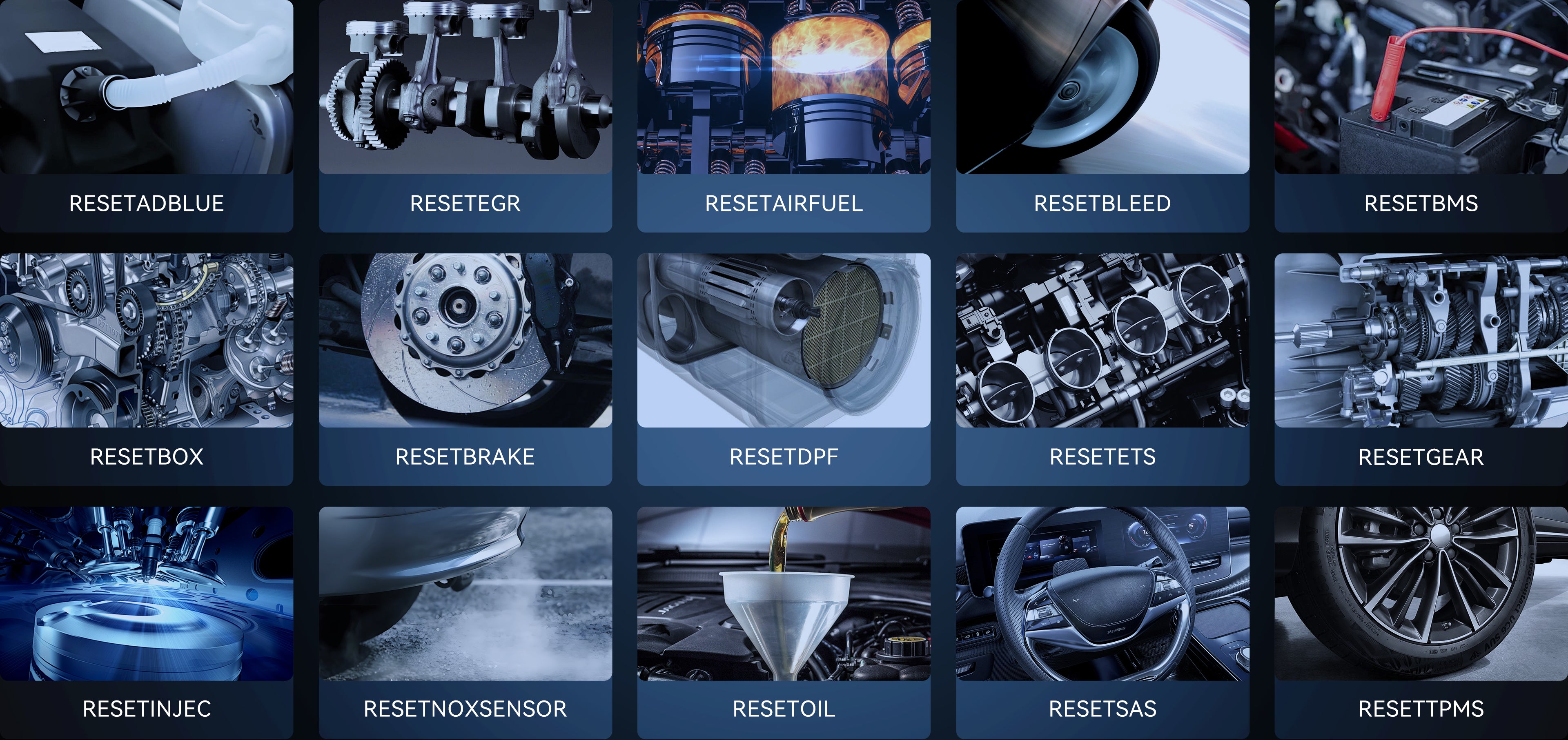 Note: the specific reset functions supported may vary depending on vehicle models and software versions.