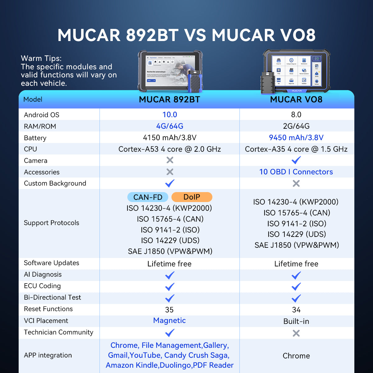 MUCAR 892BT delivers lifetime free software upgrades, keeping you ahead of evolving automotive tech. Access new vehicle coverage, advanced features, and critical updates without hidden fees—ensuring your tool stays cutting-edge forever, at zero extra cost.