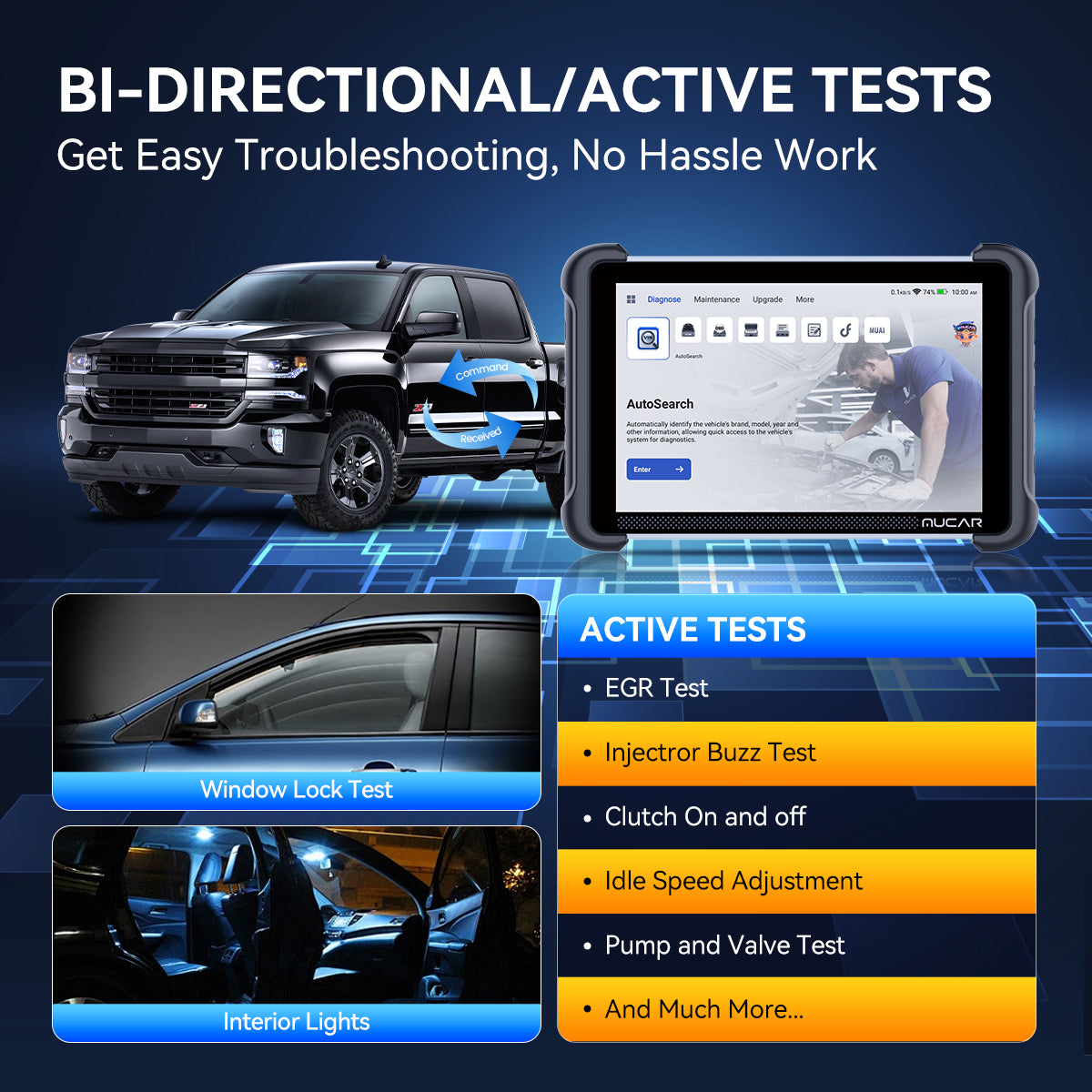 • ECU Coding, Bi-Directional test & 34+ Maintenance Functions: From battery checks to engine diagnostics, tackle all-in-one solutions—boost efficiency by 200%