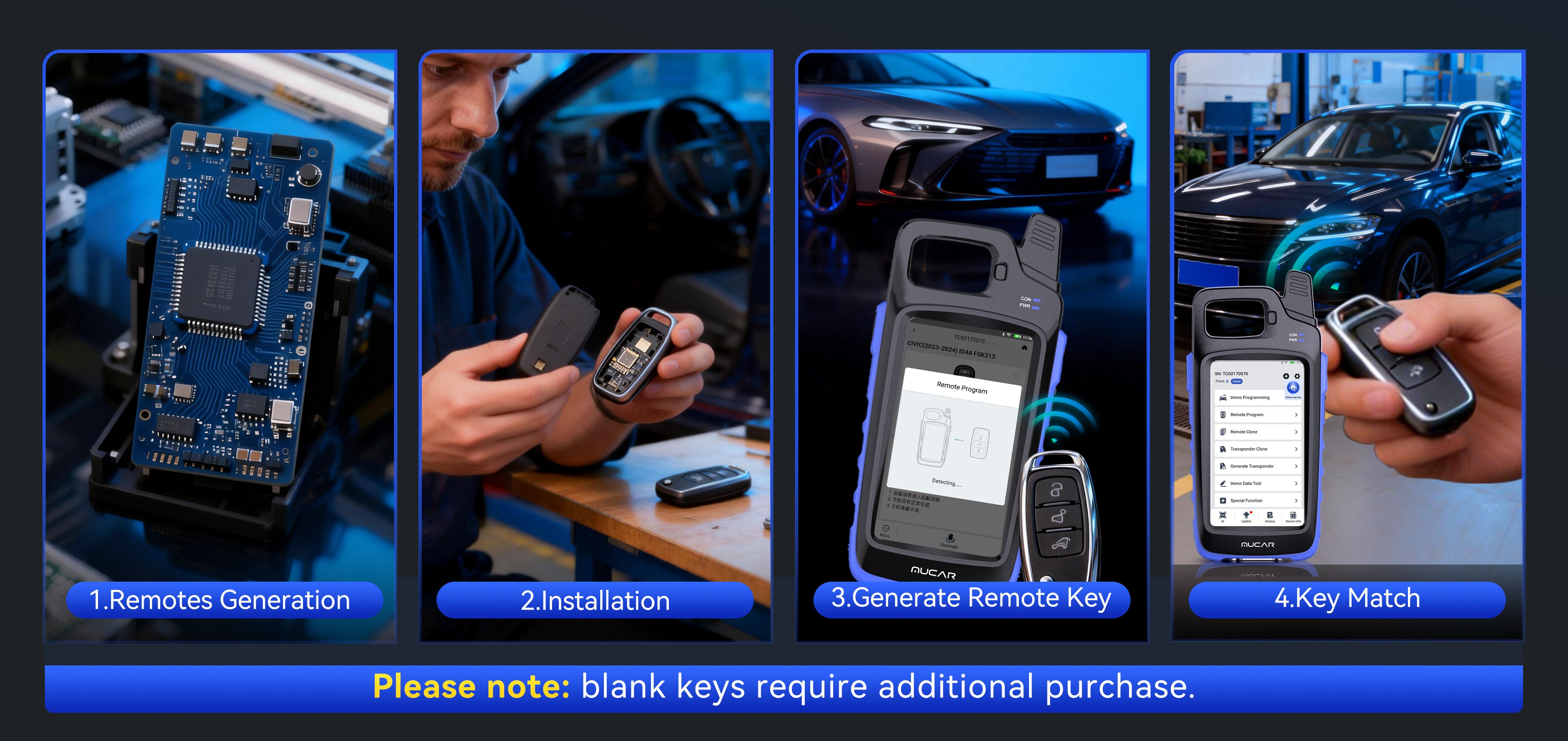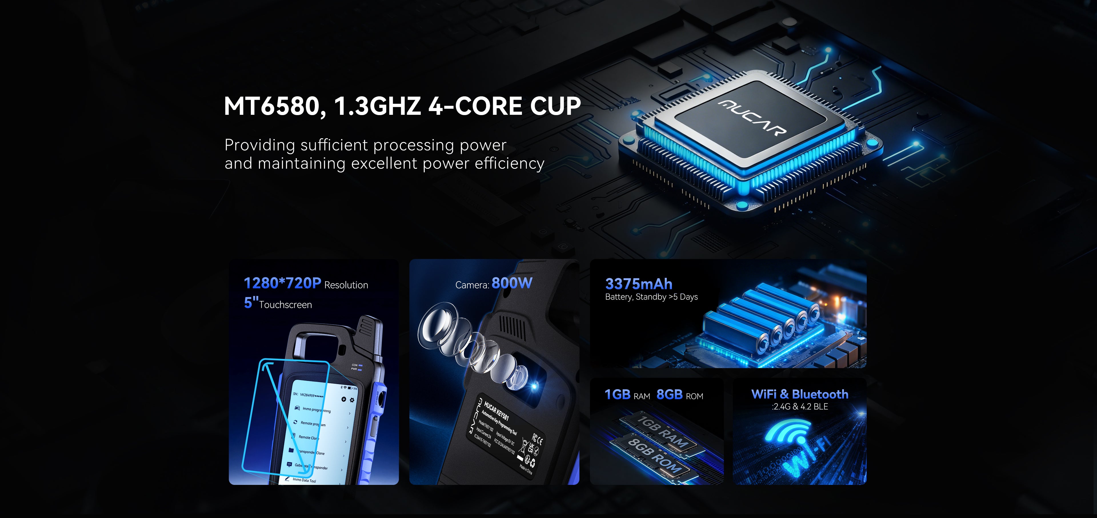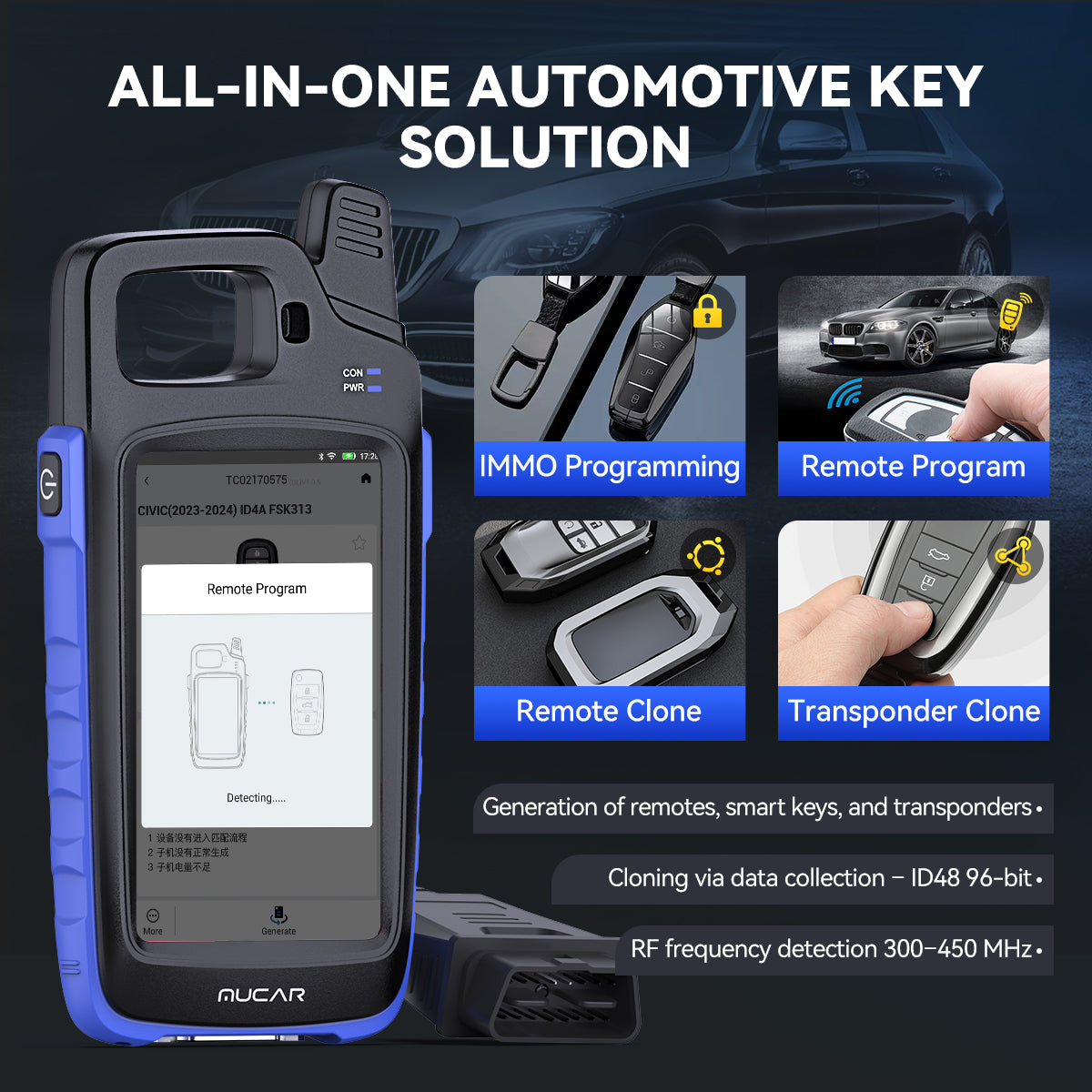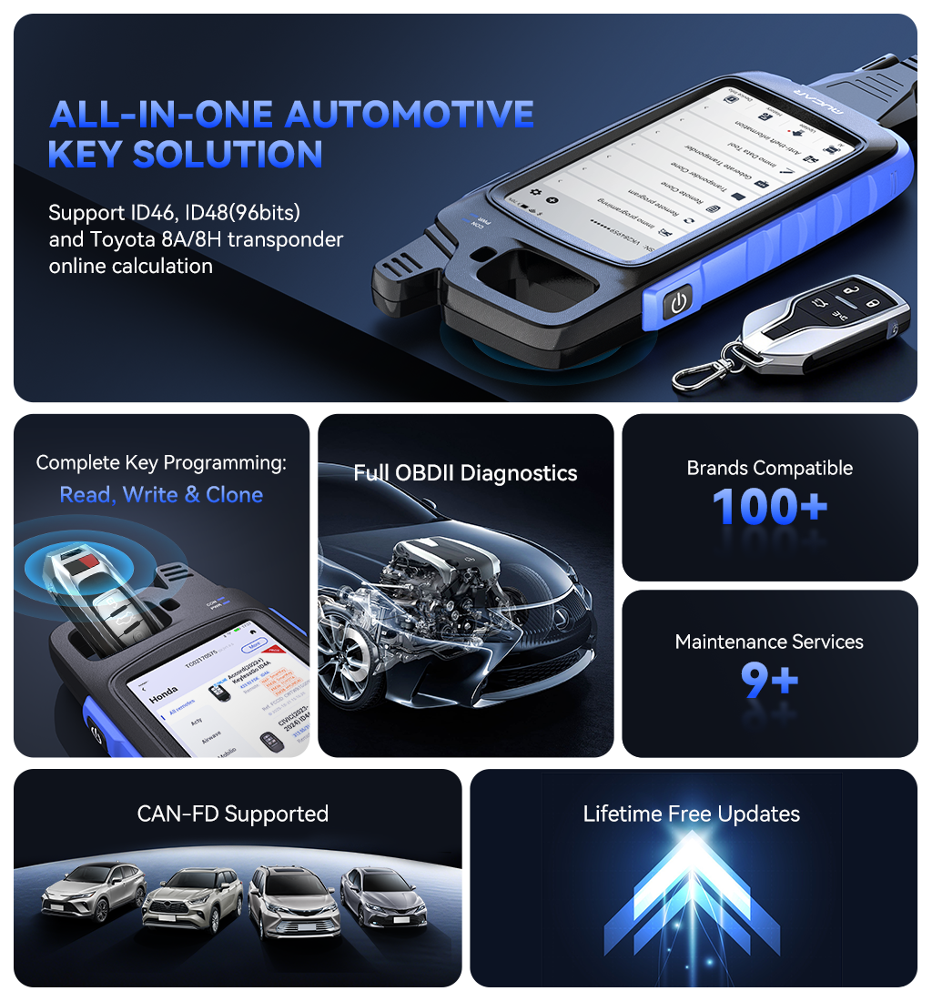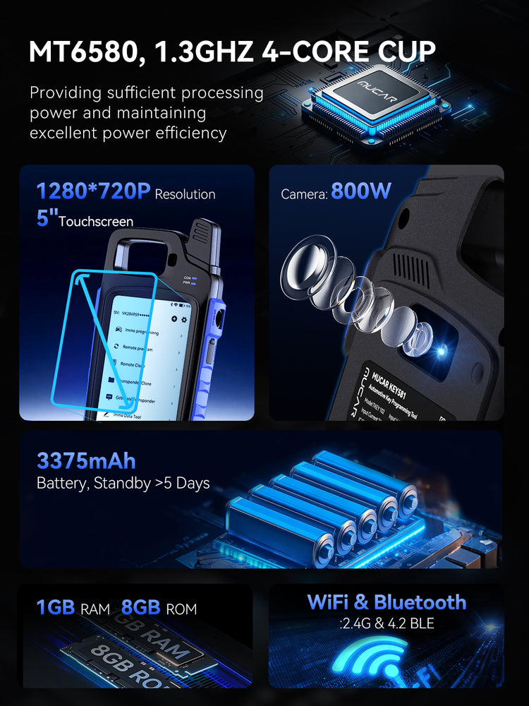 MUCAR KEY581 is designed for automotive locksmiths, workshops, and key programming specialists. It provides a comprehensive solution for generating, cloning, and programming keys, remotes, and transponders, along with advanced OBDⅡ diagnostics.