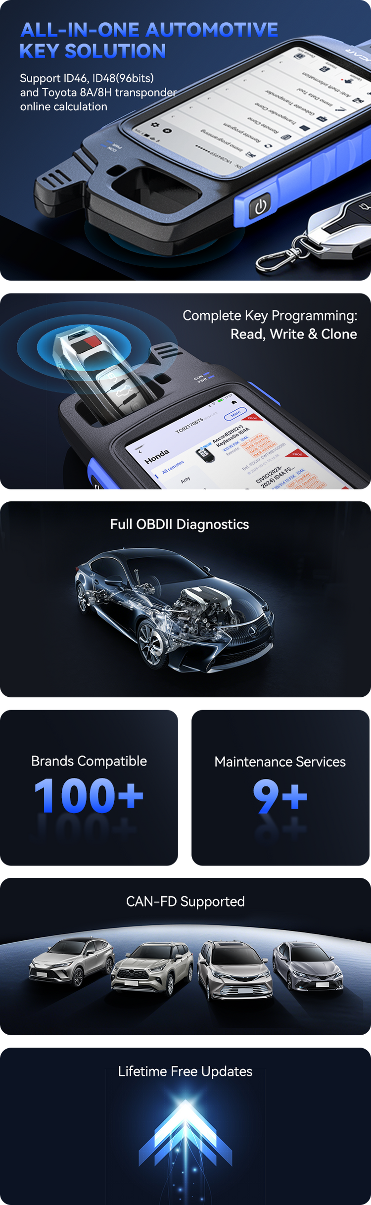 • Complete Key Programming: Read, Write, Clone & Generate for 8,000+ models.