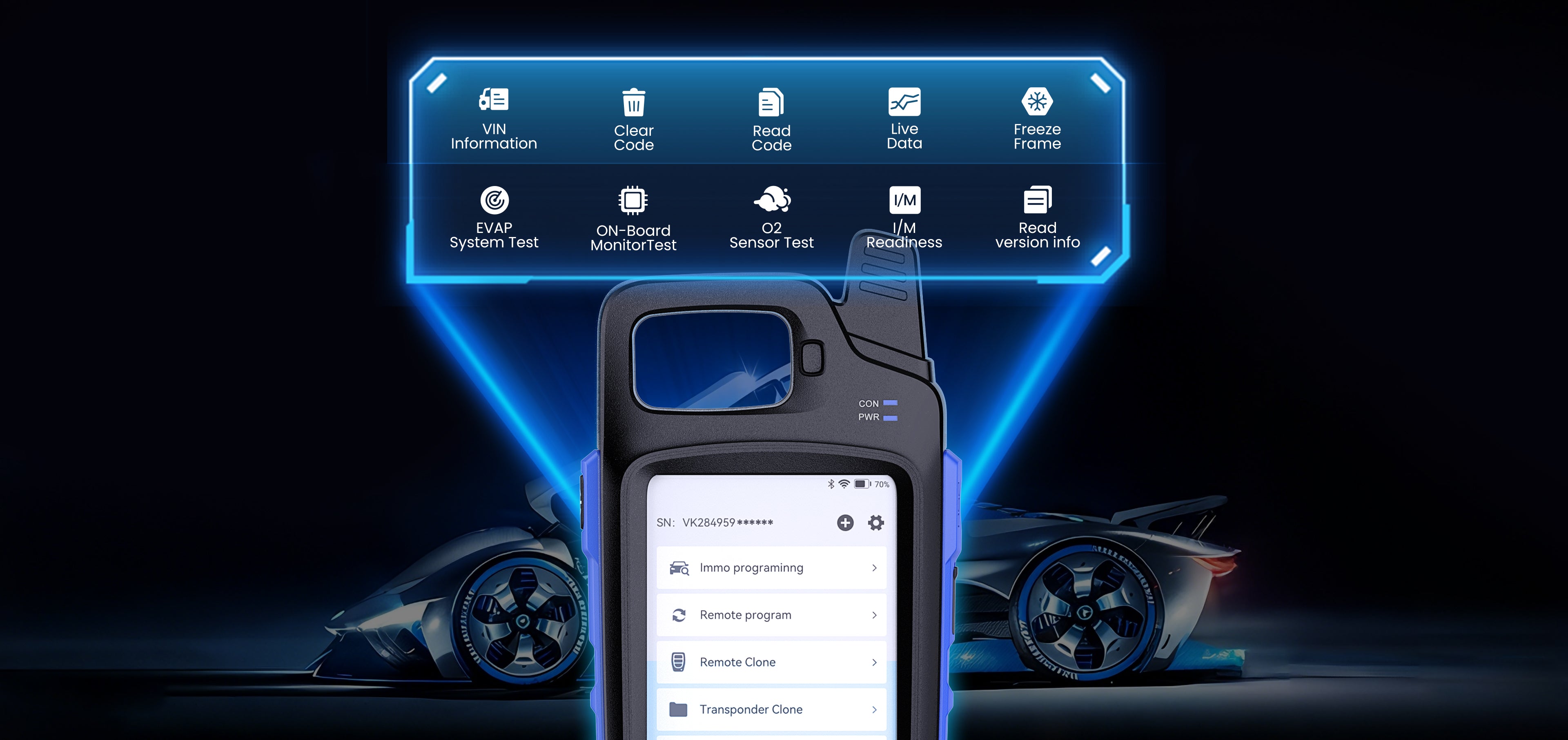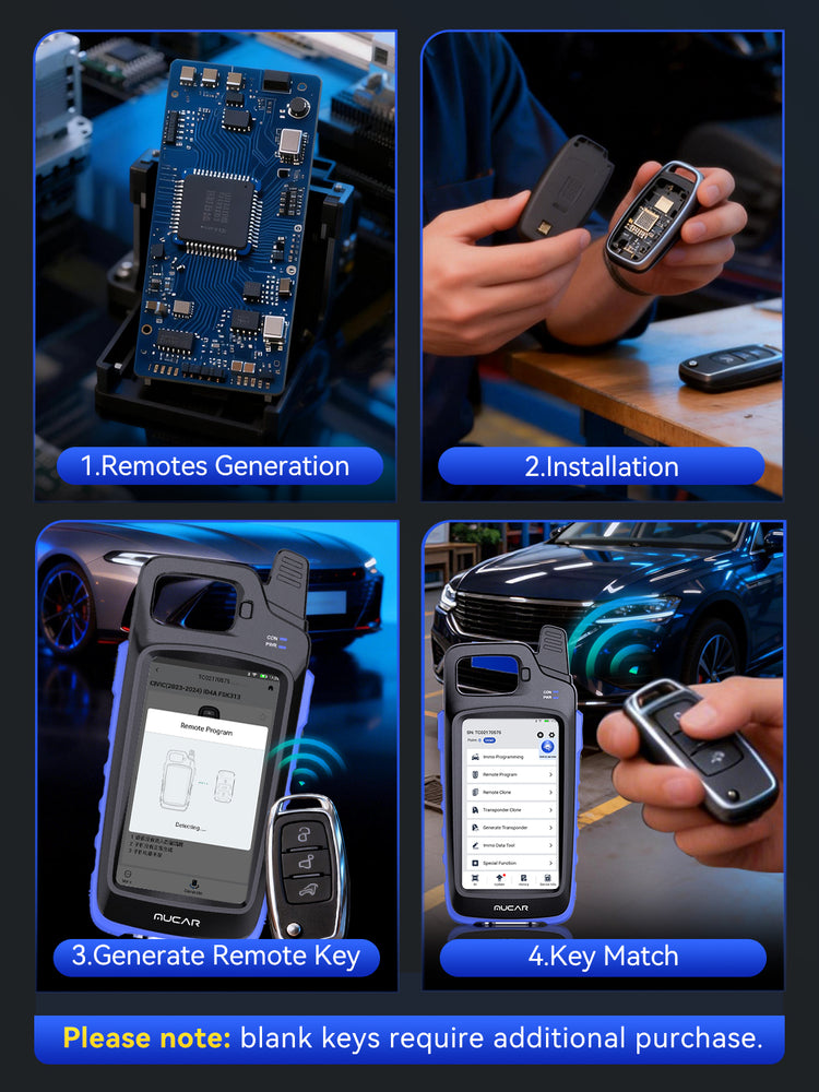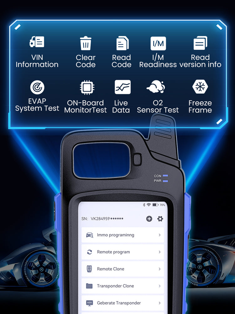 ③ Chip Identification and Cloning: It reads the data from theoriginal vehicle key chip and copies it onto a new key,allowing thenew key to start the engine without additional vehicle systemprogramming.