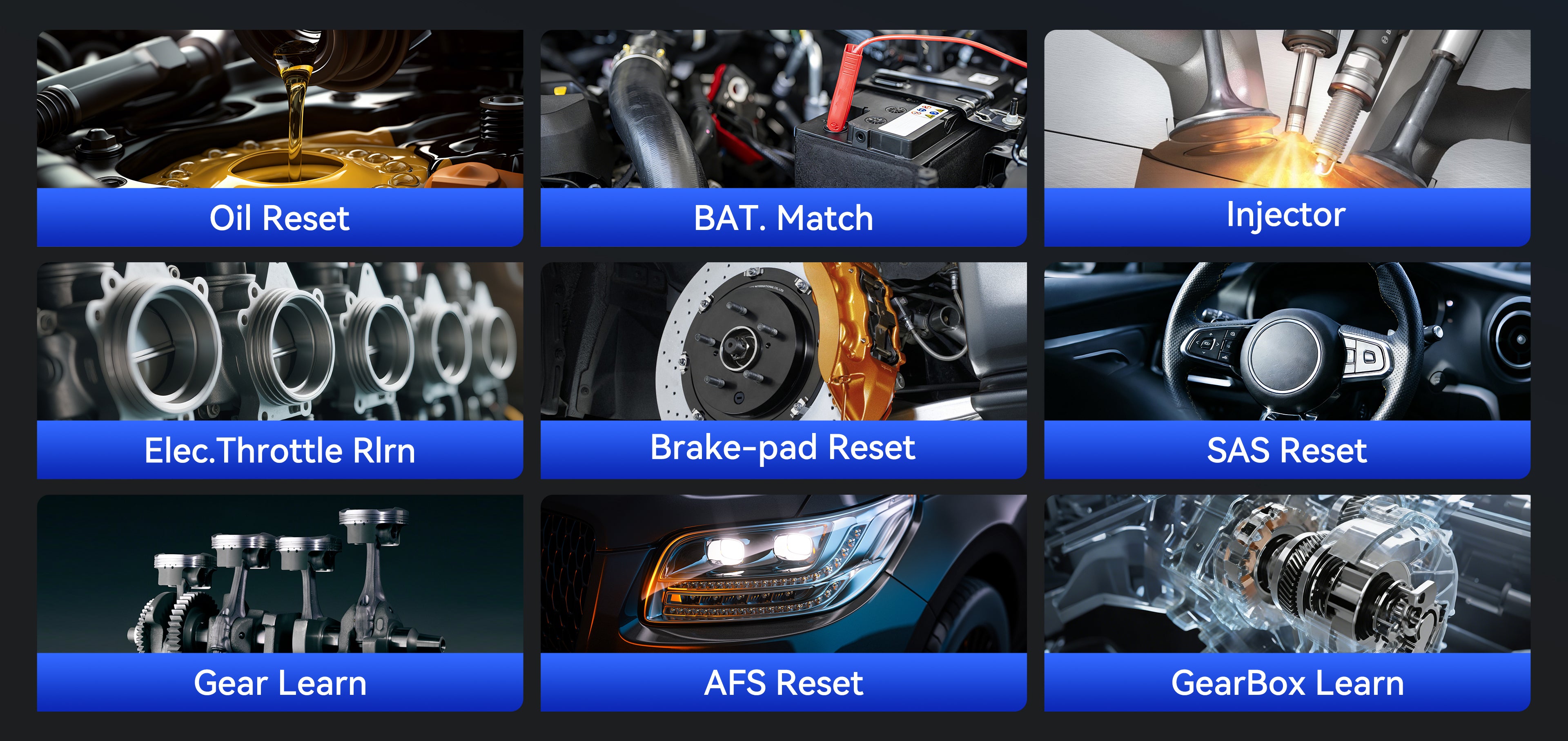 • 9 Maintenance Functions: Oil reset, BMS & SAS more for fast service.