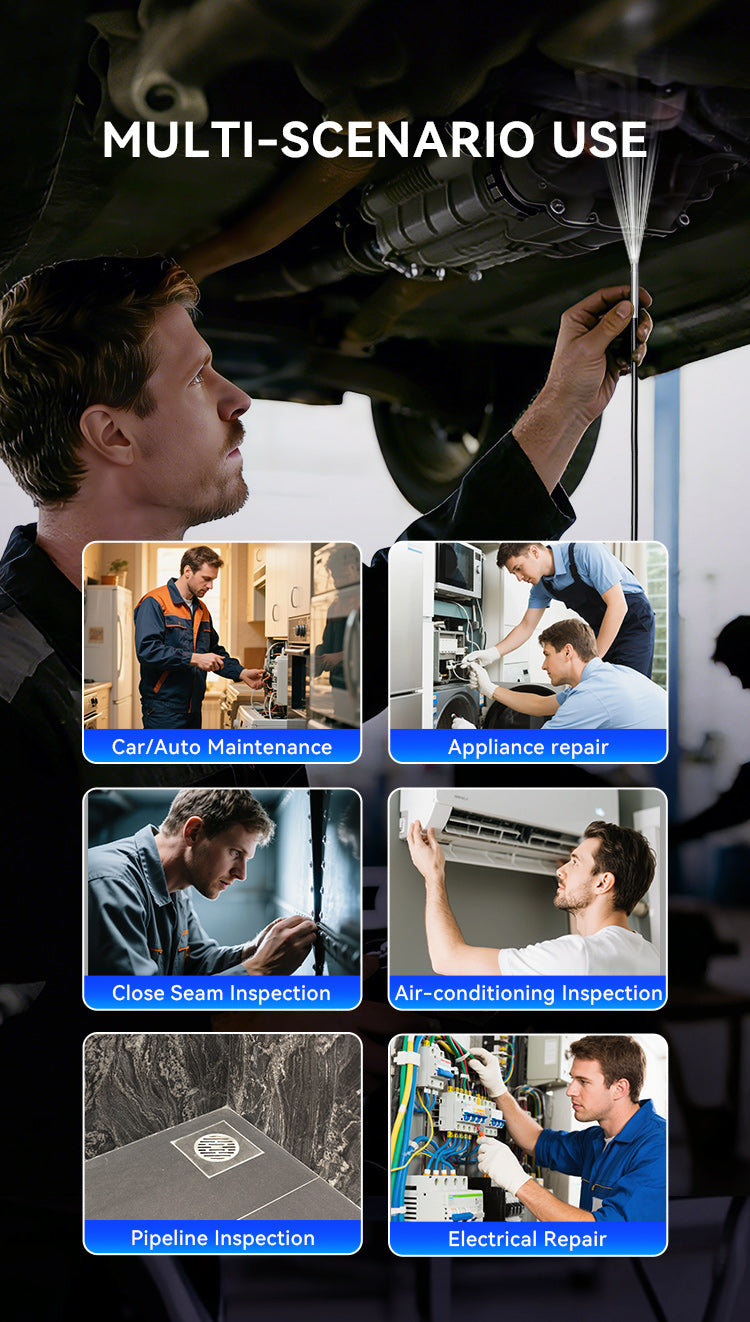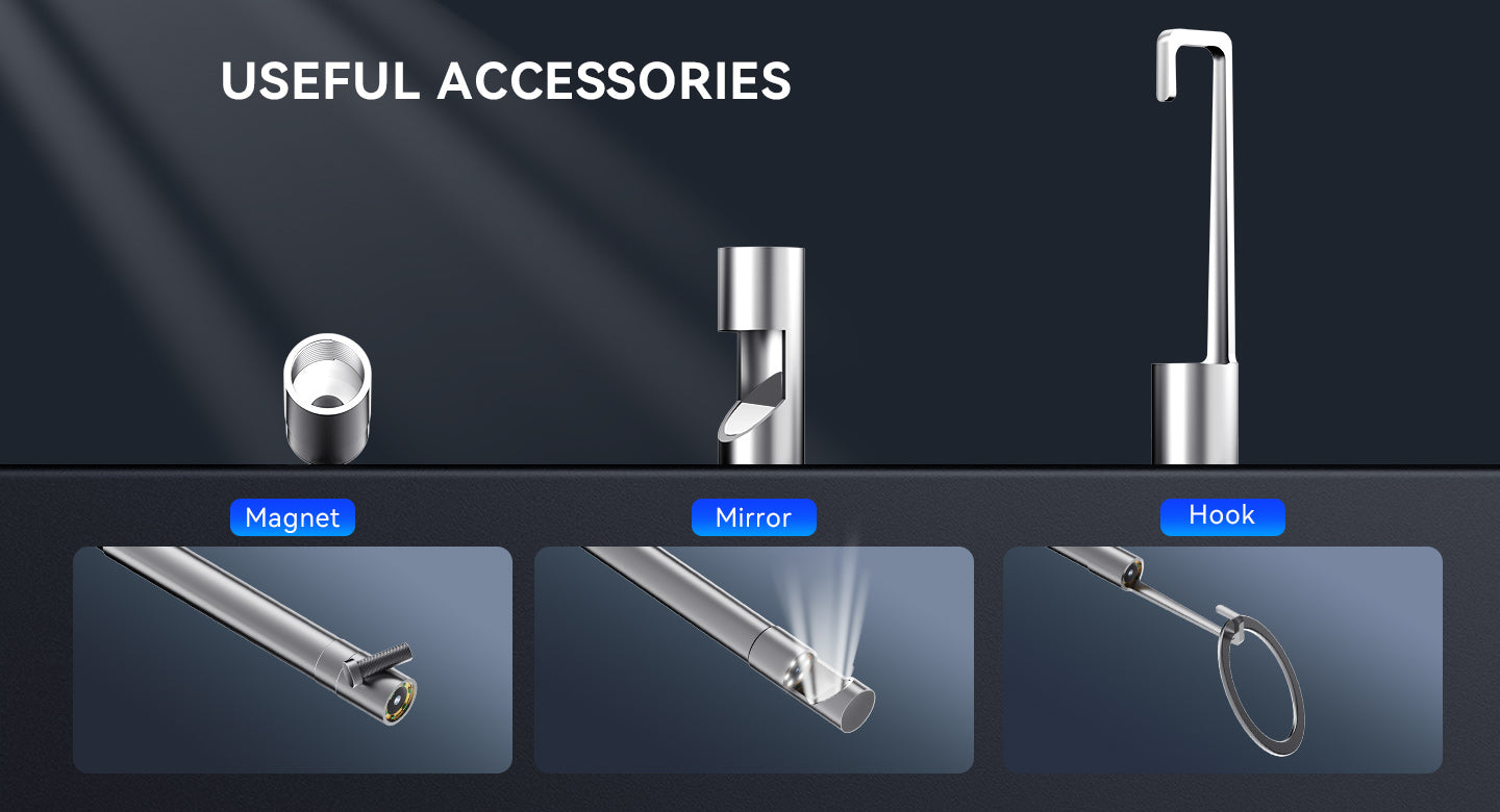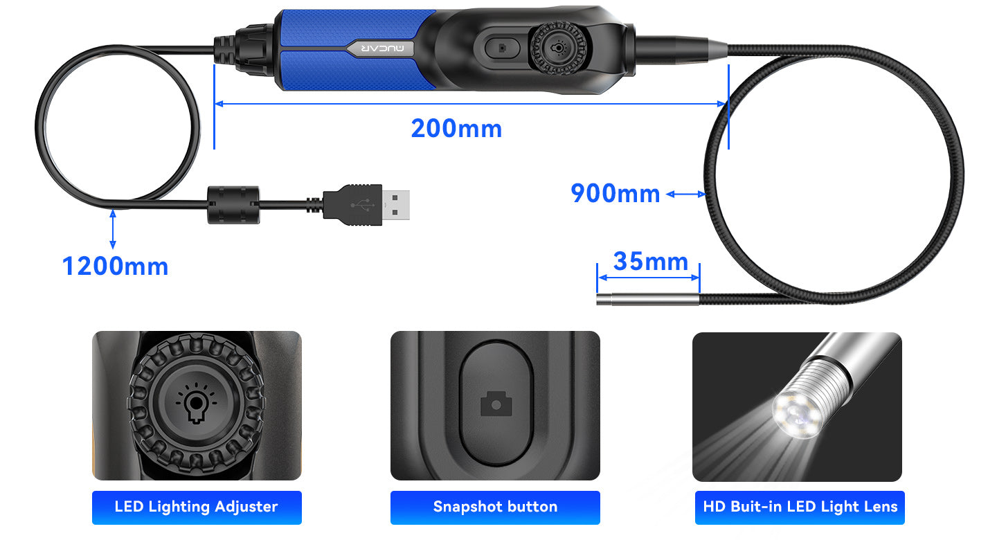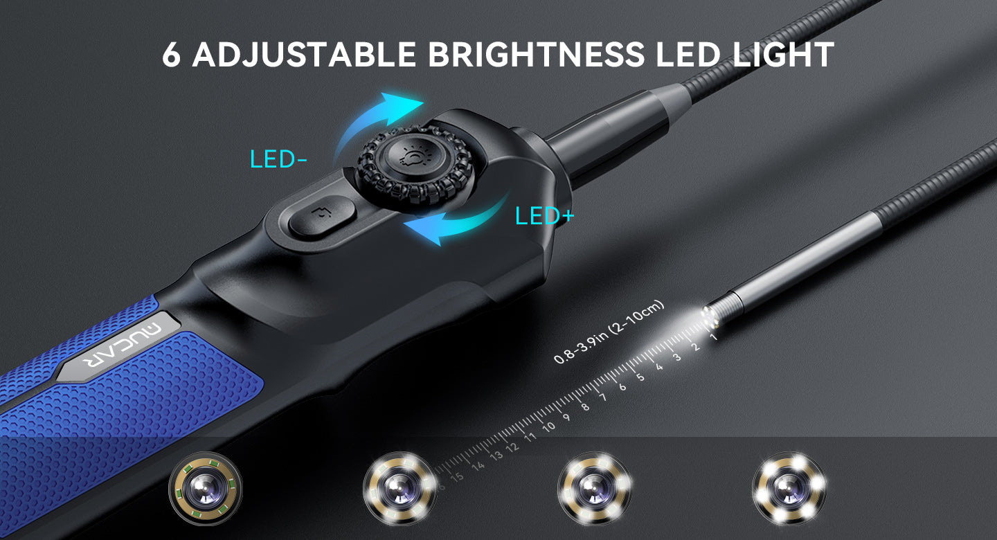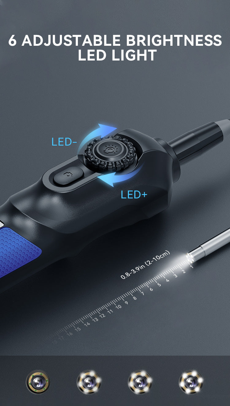 • 6-Adjustable LED Lights, optimizes visibility in 0.8-4" (2-10cm) dark cavities