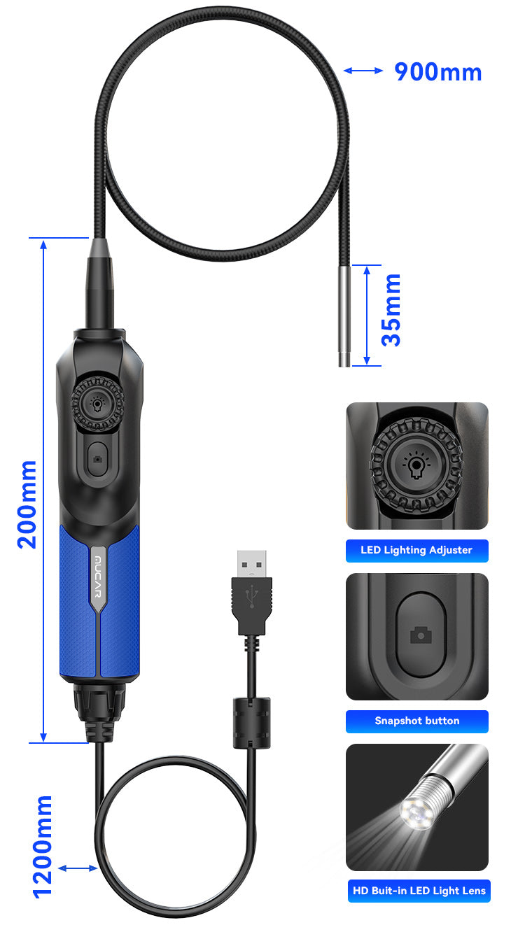 • 35" (90cm) flexible articulating probe navigates hard-to-reach areas