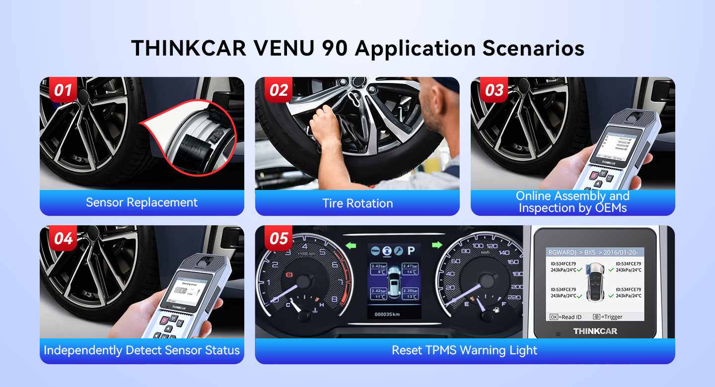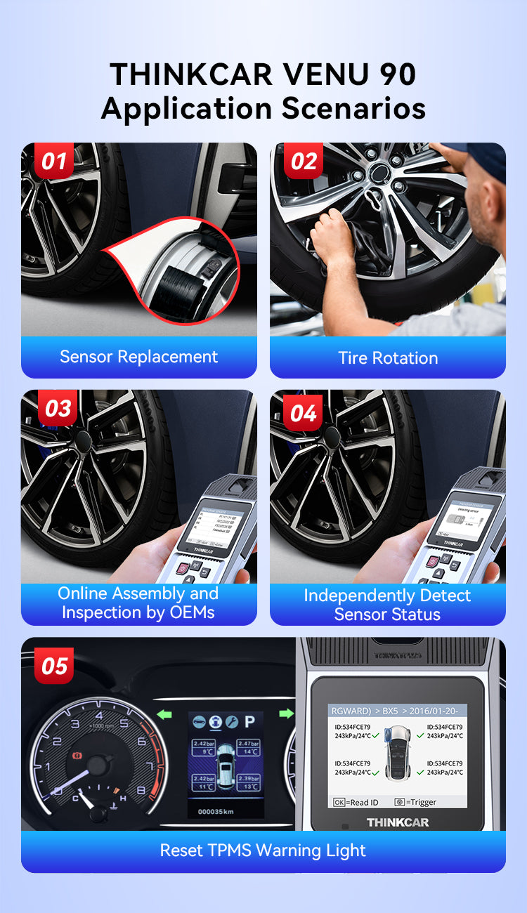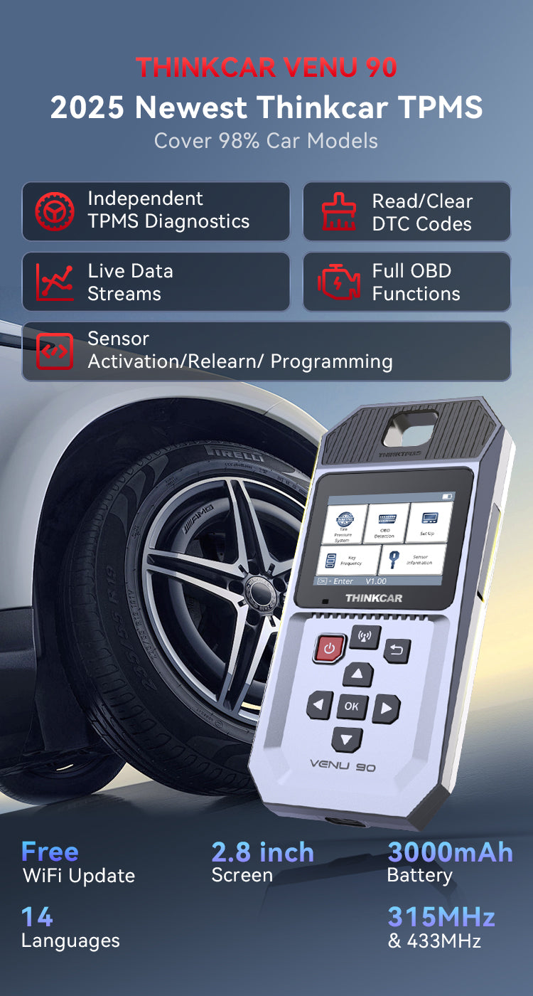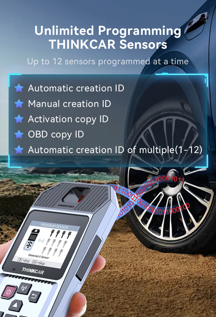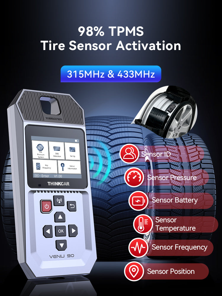 • Support all 315MHz/433MHz THINKCAR tire pressure sensors Activation
