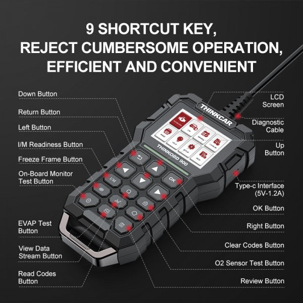 THINKOBD 900 is an upgraded model of THINKOBD 500. It is featured by 2.8-inch colorful big display screen, 9 shortcut keys, make diagnostic more efficient and easier. In additional to full OBD II functions, THINKOBD 900 code reader is also designed with lots of additional functions, allowing DIY users to fix it on one’s own and enabling mechanics to greatly improve their work efficiency. Provides quick access to the built-in Help Menus associated with the current DTC, which offers you advanced DTCs query to identify the detailed meaning, causes, and tips of DTCs;Enables you to fix the problem by yourself.