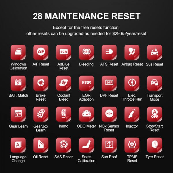 Besides actuate solenoids and actuators for active testing. This car scanner diagnostic tool also support: Auto VIN Detect, ECU Coding, Adaptation , Matching ,Key programming, Gear/SAS/EPB/TPMS/DPF/IMMO/BMS/ETS/Oil/Brake/AFS/EGR/GEARBOX/SUNROOF/SUS Reset, ABS Bleed, Injector coding .Gives you the ability to use dealership level relearn procedures to complete repairs or maintenance.
